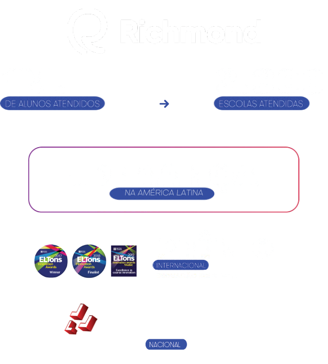 A Richmond é uma empresa global de educação, especializada em materiais, programas educacionais e recursos para o aprendizado eficaz de inglês, tanto em escolas de educação básica quanto em institutos de idiomas.